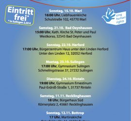 The final concert of the fall tour 2017 of the “Smile Projekt Chor” included a performance of the 4 year old son of the composer and conductor. The boy sang one verse of “Wonke Umuntu”, which is article 3 of the UDHR in Zulu. This special moment of “Sing Human […]