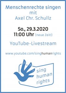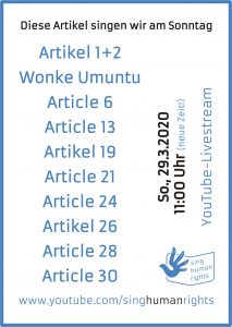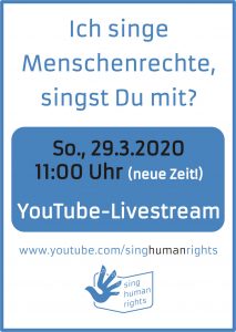 Am Sonntag, 29.3.2020 singen wir gemeinsam Menschenrechte – jede*r bei sich zu Hause!